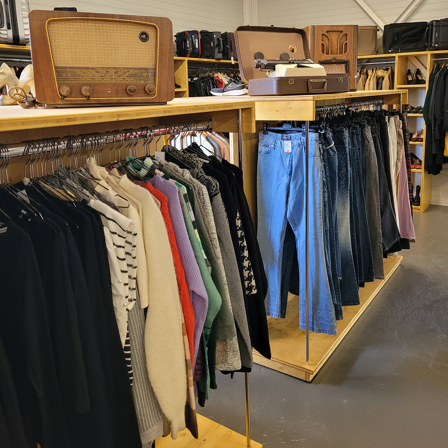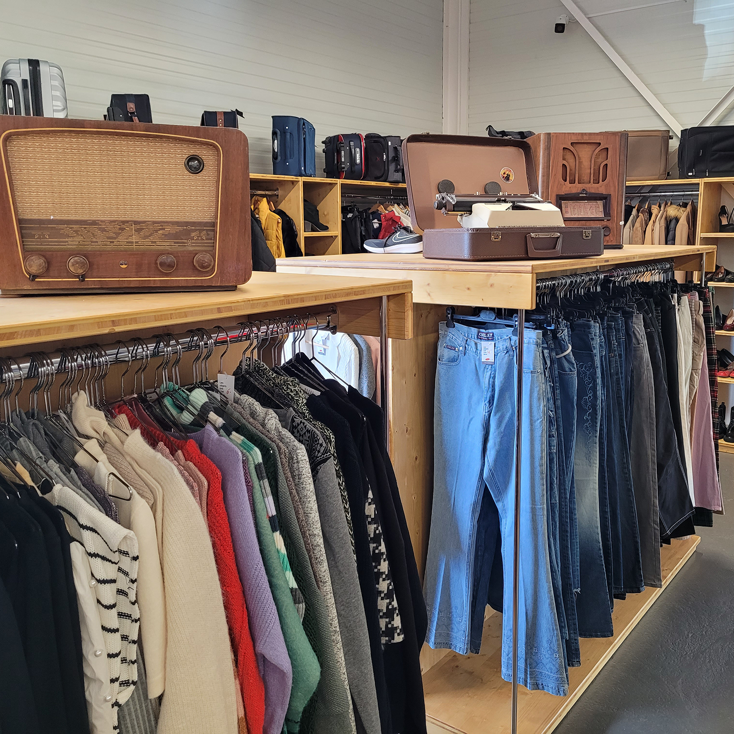 Avec ses 2’500 m2 de surface (dont 1’500 m2 réservés à la vente) et ses 2 étages, la brocante de Meyrin est une véritable caverne d’Ali Baba ! 🧞 Elle possède un volume impressionnant de trésors : meubles, articles de déco, vaisselle, vêtements, chaussures, accessoires, antiquités, etc.